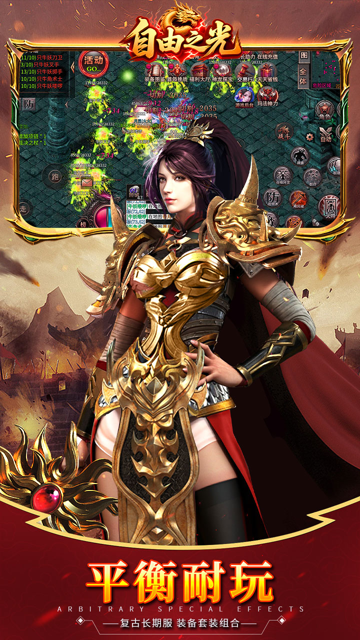 下载《自由之光》176神技专属是一款全新176复古三职业传奇,专属职业神技横扫全屏!玩法丰富,装备保值,复古爽快,创新无限,轻松升级,畅享打宝乐趣,重温经典激情!保证您不虚此行!快来加入我们吧!