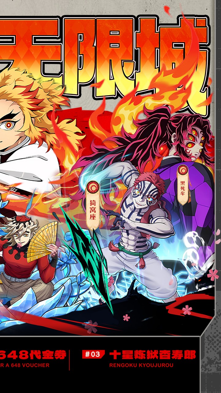 ★【创角福利】开局就送传说SSR炎柱“炼狱杏寿郎”,高频灼烧,烈系核心输出!