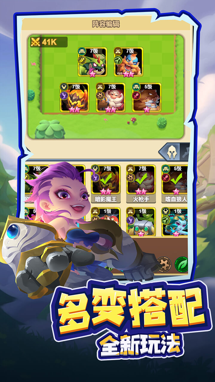策略布阵,智取胜利:告别无脑挂机!自由搭配阵容,灵活调整站位与技能释放时机,在PVE推图与PVP竞技中展现你的战术头脑。