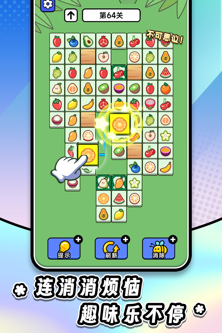 ✅ 经典升级,玩法多样:在传统连连看基础上加入道具辅助、限时挑战、关卡闯关等新模式,每一关都充满新鲜感,告别单调重复。