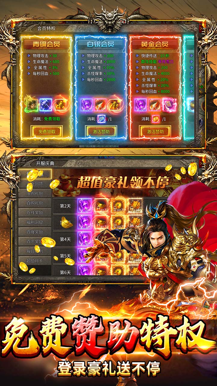 ✅【首发特权全免费】下载即领“高爆尊享礼包”:VIP15、9999万金币、SSR神兽“金蹄麒麟”+7日登录豪礼不间断!