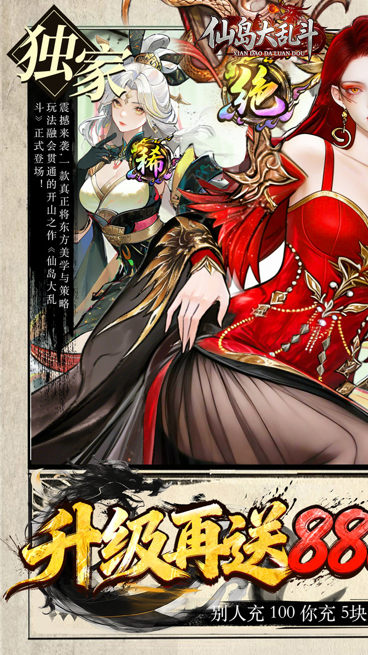 《仙岛大乱斗》是一款融合国风仙侠、轻松挂机与爆爽福利的竖版放置卡牌手游,0.05折超低充值门槛即送万元真充卡,上线秒领海量资源,零肝也能当欧皇!