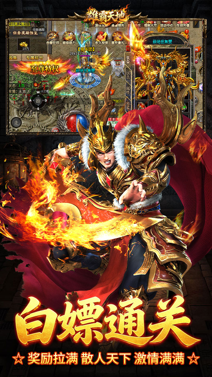 《雄霸天地》(狂送代币免费版)是一款融合热血武侠与策略卡牌的高自由度MMORPG手游,零门槛畅玩,上线即送海量代币、神装、VIP特权,真正做到“不肝不氪也能称霸江湖”!