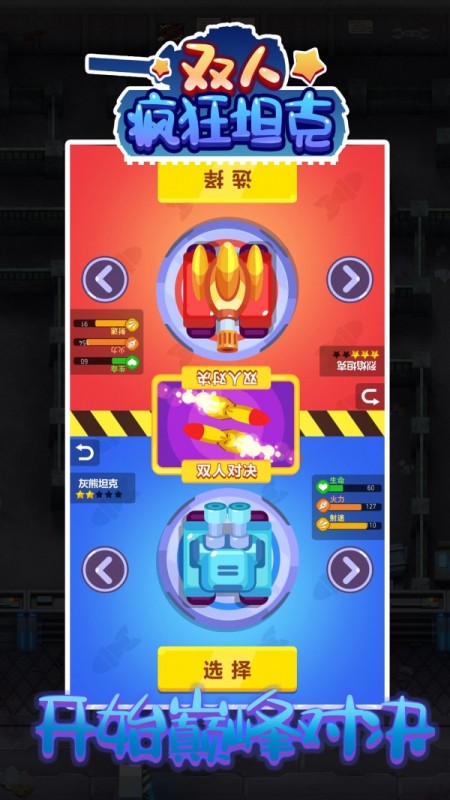 双人疯狂坦克是一款经典复古风格的多人对战休闲手游,完美复刻童年街机坦克大战的乐趣,支持双人同屏激战,随时随地开启一场紧张刺激的坦克对决。