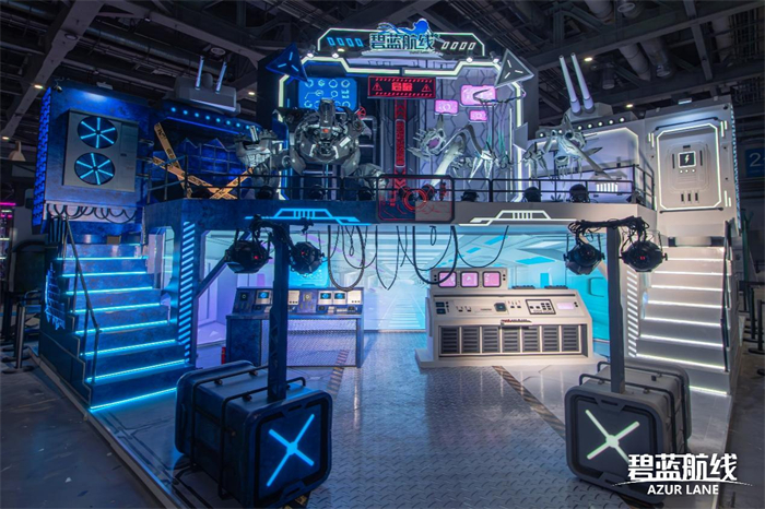 不仅如此,展台二层的科研实验室作为纯粹的展示区,还放置了诸多《碧蓝航线》的大型模型,两侧建筑上还分别架设了纳希莫夫、奇尔沙治的舰装模型,整体酷炫的展台造型引得现场观众纷纷合影留念。
