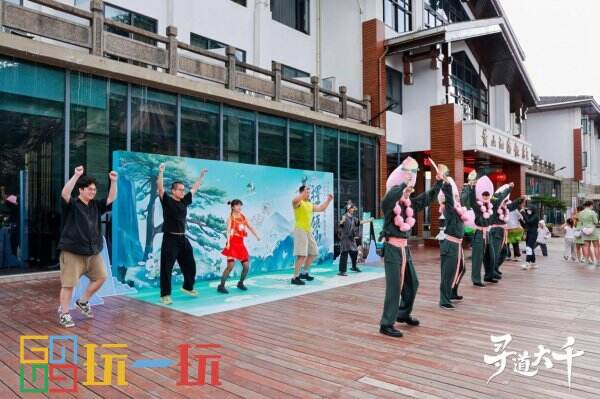 一群外国游客在现场欢乐氛围的带动下,不但操练起了斧修操,甚至主动学习起“寻道大千”的中文,完成了对中国修仙文化的初次接触。