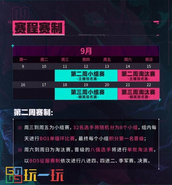 “主播邀请赛”的16位参赛选手全部返场的同时,更有各类CCG游戏圈知名大神加入,共同角逐冠军。小组赛阶段自9月11日至13日,每晚19:00-20:30进行组内单循BO1。积分规则为胜一场积3分,输一场积0分,第三天的比赛胜一场积分加倍到6分。各小组积分第一名晋级淘汰赛。小组赛期间还设置了趣味的卡组规则,在不影响公平性的前提下,丰富了赛事的趣味性。
