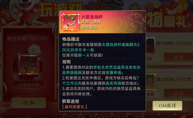 3、玩家提交兑奖申请后,游戏方核实后将在7个工作日内联系玩家提供真实有效收货地址;若选择京东卡作为奖励则会给玩家发送京东卡秘钥。